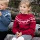 Gratis strikkeoppskrift på Reinfana genser til barn, en detaljrik og klassisk genser som kombinerer tradisjonelle mønstre med praktisk utforming.