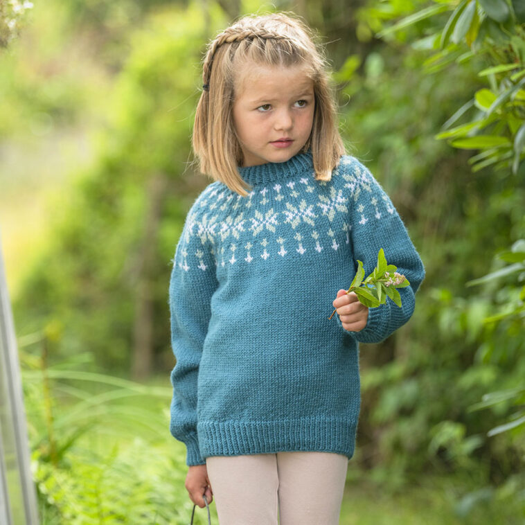 Reingenseren har en klassisk passform med raglanfelling og et mønstret bærestykke som fremhever det søte reinsdyrmotivet. Bolen strikkes rundt med vrangbord nederst og glattstrikk oppover. Ermene strikkes separat og settes sammen med bolen før bærestykket fullføres. Halskanten strikkes i vrangbord, brettes dobbelt og sys til for en behagelig og varm finish.