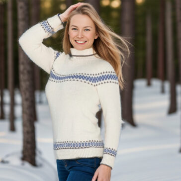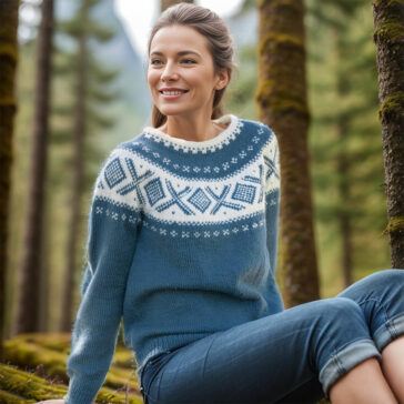 Gratis strikkeoppskrift på Aase genser, en elegant og tidløs genser som kombinerer tradisjonelt mønster med moderne stil.