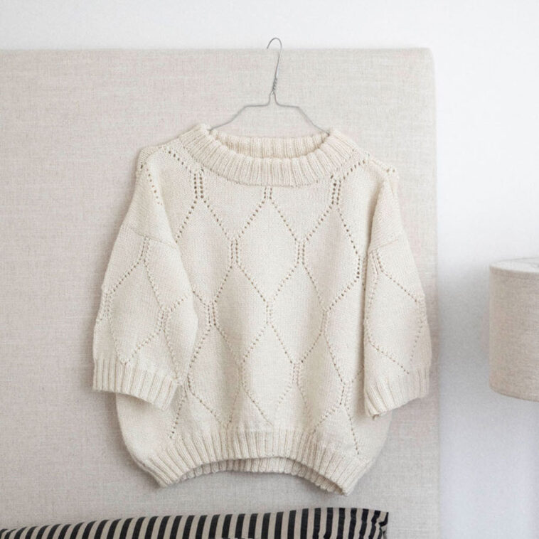Gratis strikkeoppskrift på Foro genser, en elegant og oversized genser som kombinerer et moderne uttrykk med tradisjonell mønsterstrikk.
